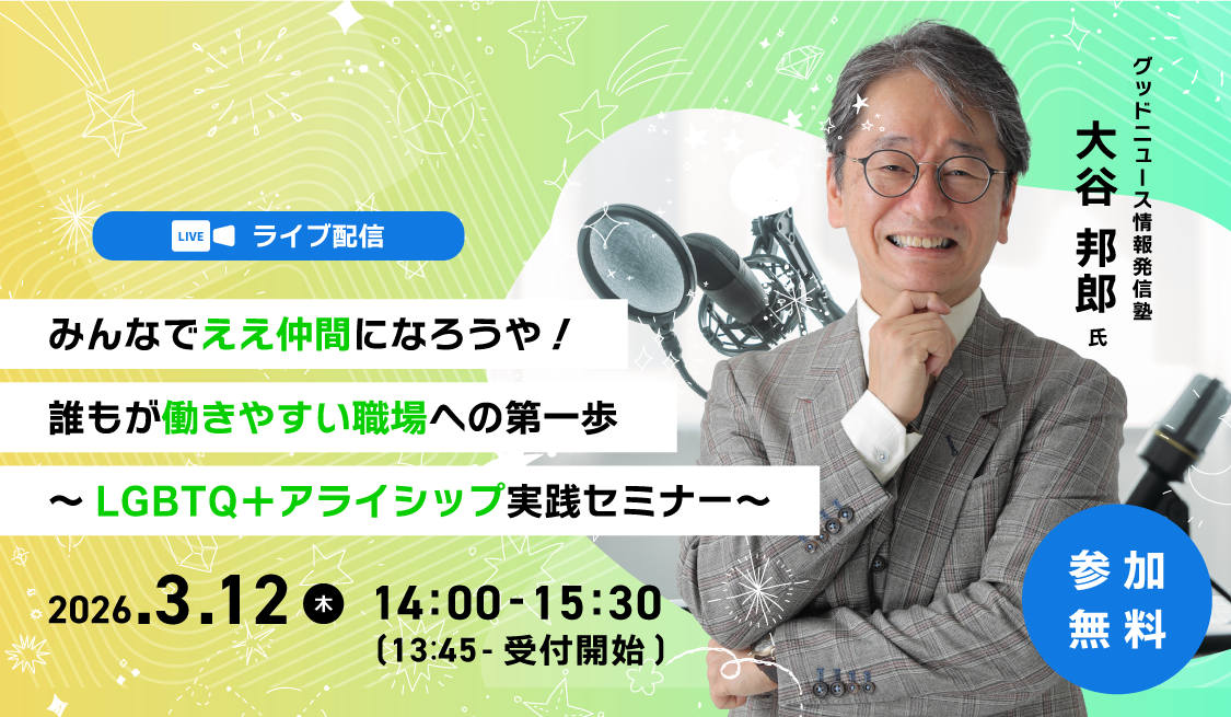 【ライブ配信】みんなでええ仲間になろうや!誰もが働きやすい職場への第一歩 ~LGBTQ+アライシップ実践セミナー~